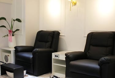 A welcoming salon reception area with stylish decor and comfortable seating.