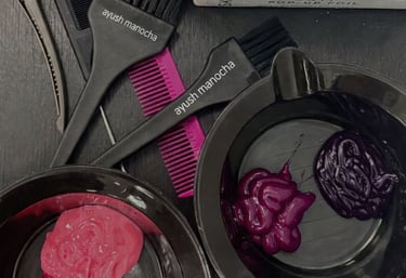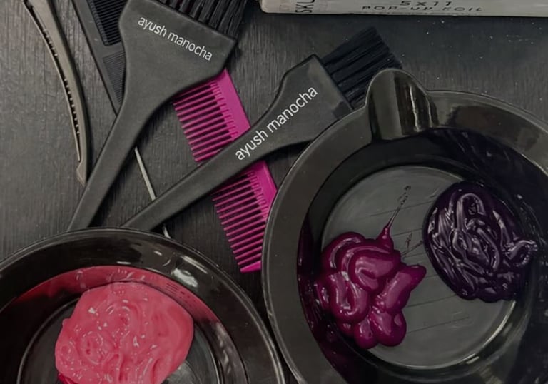 A vibrant shot of a client getting a trendy hair color treatment at ayush manocha unisex salon.